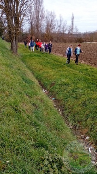 C’est par un temps couvert, mais pas de pluie que va se dérouler notre première rando de l’année 2026. Nous sommes 33 à partir du foyer rural de St-Jory à 14h00. Nous prenons le chemin du Trinchet et rejoignons par un chemin herbeux l’Hers qui a une couleur café au lait. Nous longeons l’Hers quelques kilomètres et dans un grand champ au loin on aperçoit 4 ou 5 chevreuils. Nous arrivons au pont de la route de St-Sauveur fabriqué tout en briques roses et traversons la route prudemment, car très passagère et rejoignons l’hers de l’autre côté. Nous traversons cette grande plaine par de larges chemins de terre, ce qui nous permet de bien tchatter. Nous prenons le chemin de Tropconta, puis le chemin de Fontauzy et allons rejoindre l’hers. Nous prenons un petit sentier qui s’enfonce à travers de quelques épineux et retrouvons le chemin herbeux un peu boueux, sur le chemin un ragondin nous regarde le pauvre à l'air mal en point. nous retrouvons le pont de la route de St-Sauveur, nous marchons un court-instant sur la banquette pour rejoindre le service de fruits et légumes de la ferme de la Rouzière. Nous passons au milieu de champs de divers légumes et par un chemin herbeux arrivons au collège de St-Jory et, sommes applaudis pas quelques élèves du collège. Nous passons devant l’école primaire Georges Brassens et rejoignons le lac du Labou, passons derrière l’école maternelle du Lac et rejoignons nos voitures. Il est 16h30 quand se termine cette balade de 9,500km d’un parcours facile, mais un peu boueux par endroit.
