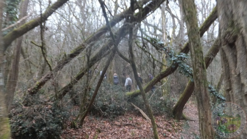 C’est par un ciel couvert, mais une température douce que va se dérouler notre rando qui part du nouveau cimetière de St-sauveur. Nous sommes 31 et démarrons à 14h15 en traversant l’aire de jeux puis, nous allons rejoindre la place de l’église pour aller prendre le chemin du Caminet qui redescend par un chemin bordé de quelques épineux et bosquets. Nous arrivons sur la route de