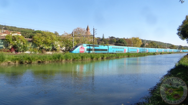 Nous sommes 40 à nous retrouver au parking du canal de Grisolles, pour notre rando du Vendredi, il est 14h20 quand nous prenons le chemin de halage du canal jusqu’à Pompignan. Des trains nous saluent de leur klaxon, nous arrivons à Pompignan et nous traversons la RD 820 pour rejoindre le château de Pompignan, avec son portail monumental, nous passons devant le lavoir sans lavandières, et nous saluons la fontaine, avant de marquer un arrêt pour se désaltérer, et avant d’attaquer la sévère montée qui va nous amener en haut de Pompignan, jusqu’au chemin de la Moissagaise. Nous faisons une nouvelle halte pour récupérer de cette belle montée. Ouf, nous sommes sur le plateau, et c’est à travers des vignes aux couleurs rouge et or que nous poursuivons notre rando, au passage, on aperçoit le château de st Sernin, et le château d’eau de Pompignan, nous passons à côté d’un beau pigeonnier en pied de mulet très bien restauré. Nous arrivons à la route de Fronton que nous traversons prudemment, pour rejoindre le très beau chemin longeant le ruisseau de st Jean, le chemin nous apporte de l’ombre et une fraîcheur qui nous fait du bien, nous quittons avec regret le chemin, parce que c’est une belle côte qui s’offre à nous, et comme nous sommes bien chaud, c’est sans souci que nous arrivons au point de vue qui domine la plaine de Garonne. Une halte pour profiter du point de vue, et nous arrivons aux réservoirs d’eau de Grisolles, nous passons à côté d’une nouvelle antenne de relais téléphonique qui n’y était pas il y a 2 ans lors de notre dernier passage. Nous retraversons la route de Fronton, pour prendre le sentier plein d’ornières, et pour arriver au chemin de la côte vieille, que nous descendons, nous arrivons à nouveau à la RD 820, et c’est protégé par un énorme tracteur (merci chauffeur) que nous la traversons, pour rejoindre nos voitures à 17h20, après cette belle rando, physique mais agréable après avoir parcouru 10,8km.
